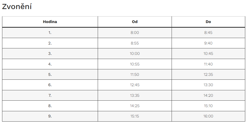 Rozvrh hodin + zvonění